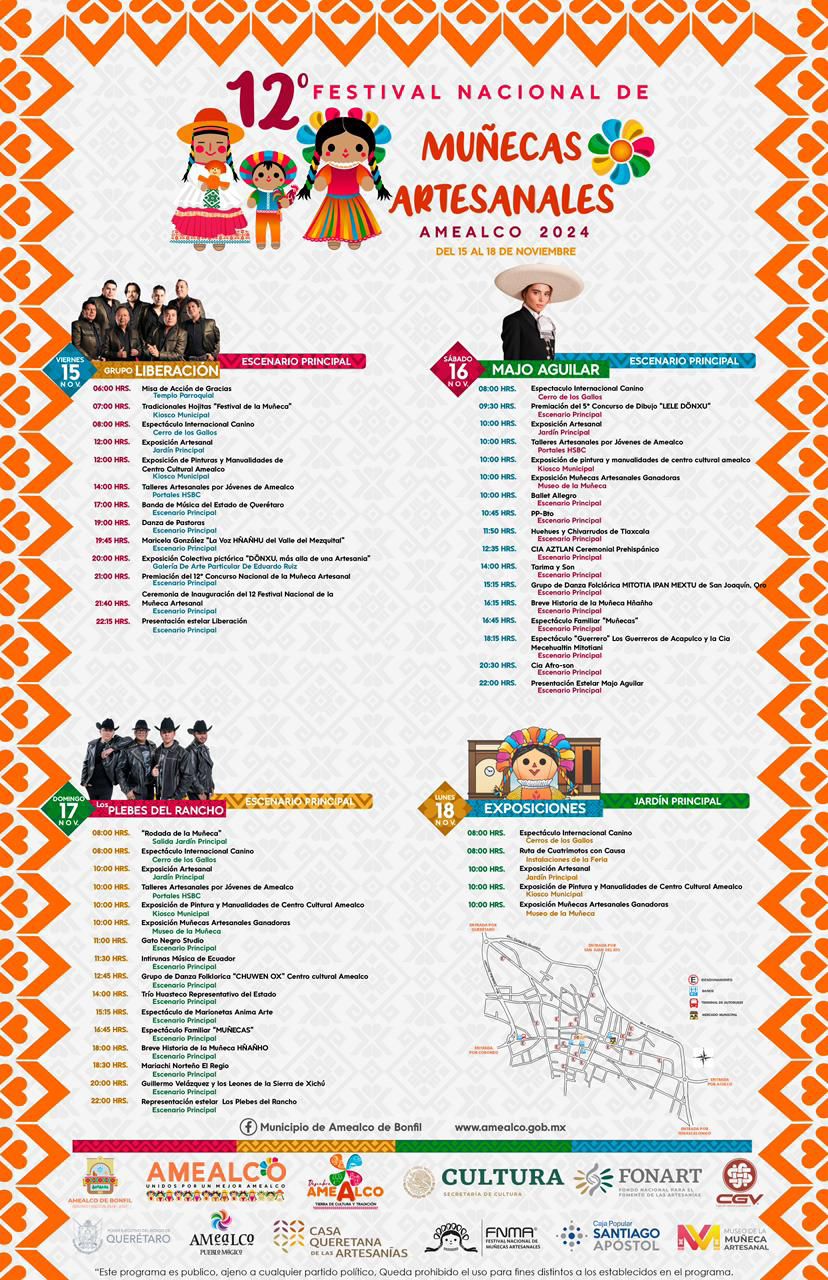 El festival, que se llevará a cabo del 15 al 18 de noviembre, contará con una amplia programación que incluirá presentaciones artísticas, exposiciones de muñecas artesanales de diferentes regiones del país, talleres interactivos y un foro cultural para toda la familia. Entre los artistas principales que se presentarán en el Teatro del Pueblo se encuentran el Grupo Liberación el viernes 15 de noviembre, Majo Aguilar el sábado 16 de noviembre, y Los Plebes del Rancho el domingo 17 de noviembre, quienes prometen espectáculos inolvidables para todos los asistentes.