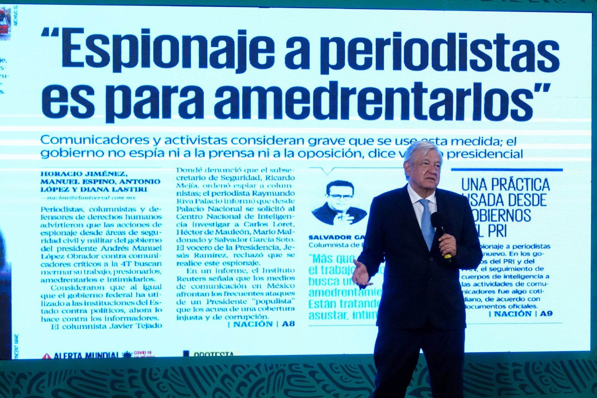 Las otras dos noticias que se incluyeron en esta semana fue sobre el supuesto espionaje a periodistas y que el gobierno mexicano haya contratado a una empresa fantasma para la adquisición de 35 millones de la vacuna Cansino contra el COVID-19.
