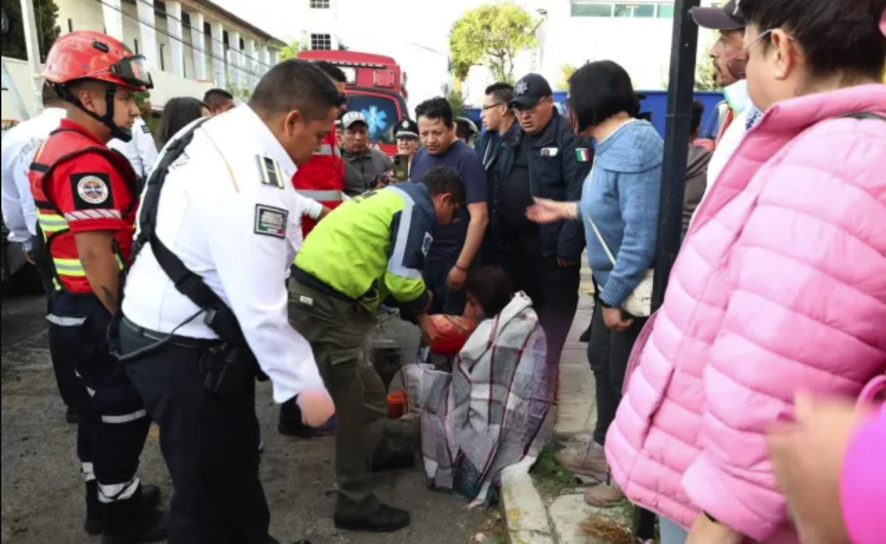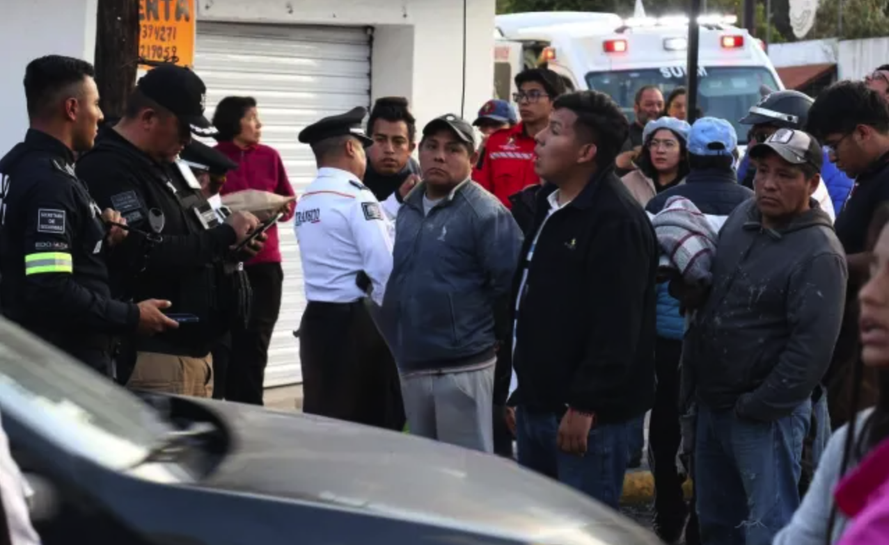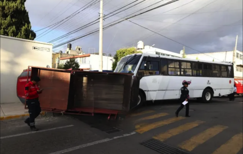 Un autobús acaba de voltear una camioneta en el centro de Toluca