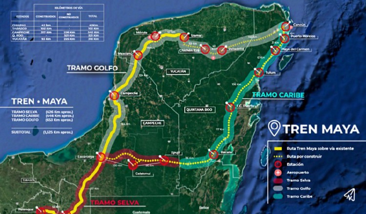 El Tren Maya ha tenido una inversión de 6,294 millones de dólares para cerca de 1,554 kilómetros en los cinco estados del sureste mexicano donde cruzará: Chiapas, Tabasco, Campeche, Yucatán y Quintana Roo.