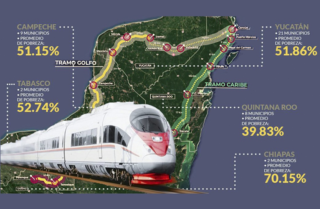 AMLO defiende que el tren está pensado para desarrollar la economía del sureste del país, que ha estado rezagada históricamente en comparación con el centro y norte.