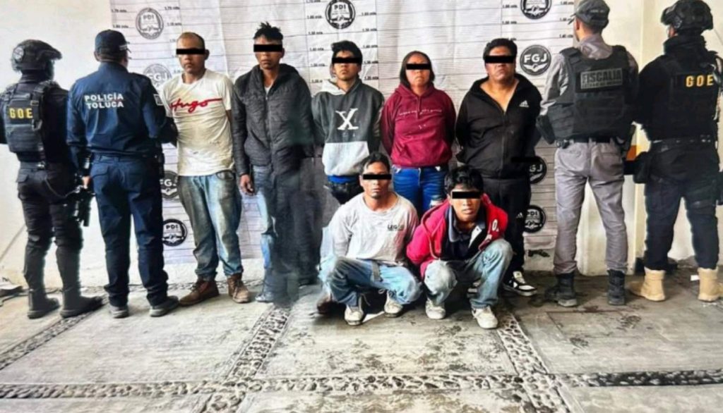 Posteriormente, en San Cristóbal Huichochitlán, fueron aprehendidos María Guadalupe “N”, Donovan “N”, Daniel “N”, Carlos “N”, Jaime “N”, alias El Jaime, Álvaro “N” y Saúl “N”, de entre 19 y 45 años de edad.