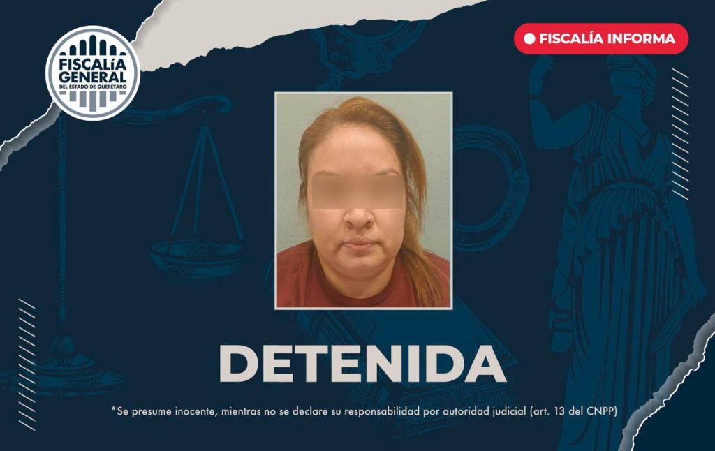 La Fiscalía General de Justicia de Querétaro informó que la mujer fue detenida este miércoles 1 de enero de 2025 en el municipio de Cadereyta.