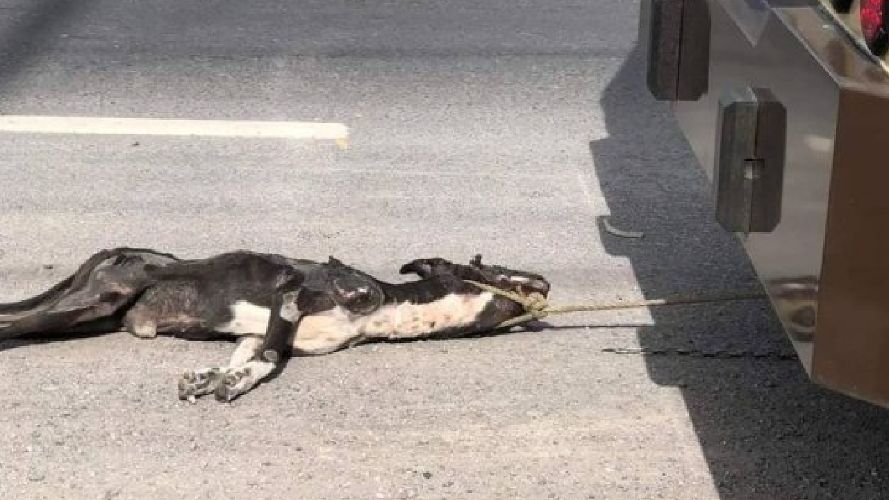 El canino estaba estaba atado al vehículo y una familia que viajaba en otro auto sobre el libramiento oriente del municipio de Cuautla, culparon a los tripulantes del pesado vehículo de maltrato animal.