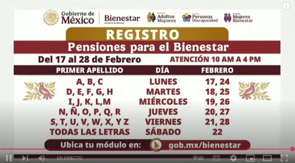Será a partir de este lunes 17 y hasta el próximo 28 de febrero cuando las personas interesadas puedan realizar el registro en alguno de los módulos del bienestar cercanos a su domicilio, solo será necesario acudir en la fecha indicada según la primera letra de su apellido.