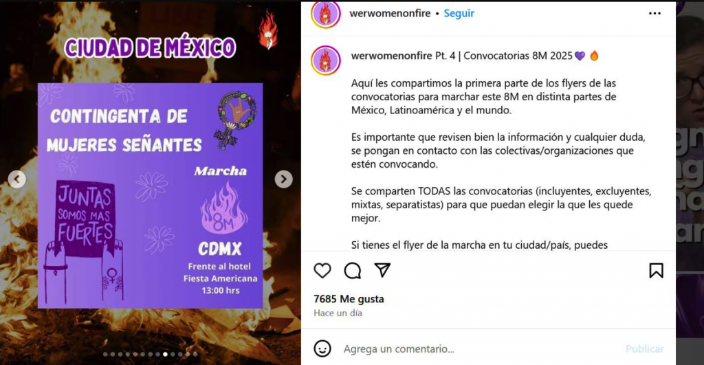 En tanto, el contingente Solidaridad Antifascista convoca a marchar el 8M a las 11:30 de la mañana, para salir a las 12:00 del día. El punto de reunión es Reforma, esquina con París, a lado del Senado.