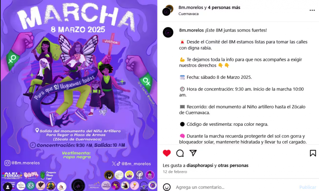 En la ‘ciudad de la eterna primavera’ habrá marcha del 8M, es una convocatoria transincluyente que llama a todas las mujeres a salir a marchar en marzo. La cita es en la salida del Monumento del Niño Artillero, en Cuernavaca, a las 9:30 horas.