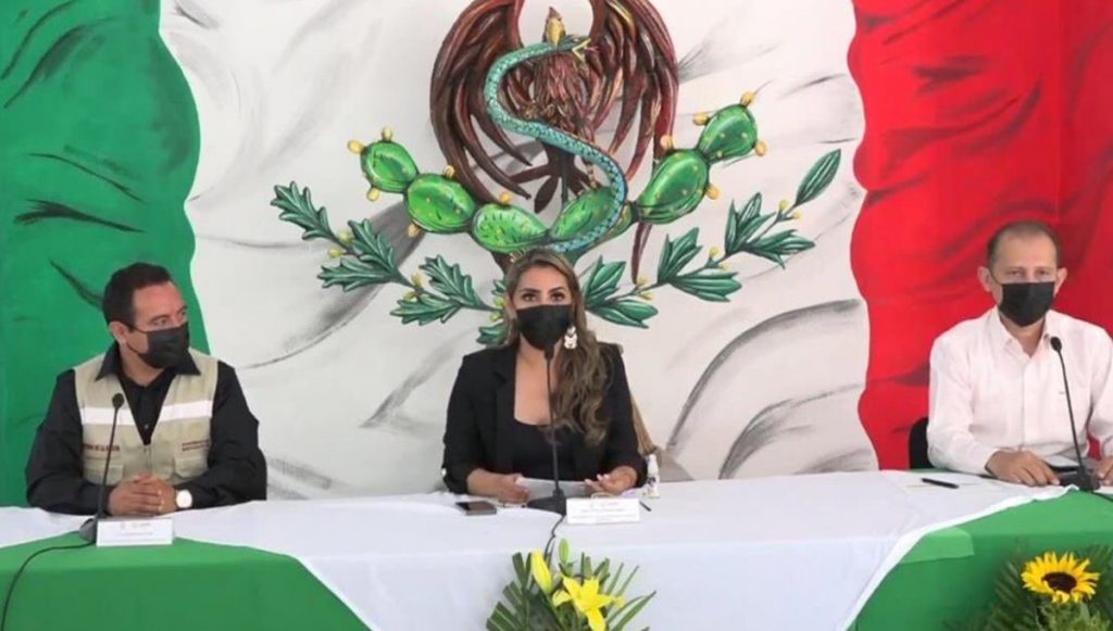 En conferencia de prensa para dar a conocer los avances de la enfermedad COVID-19 en Guerrero, la gobernadora resaltó frente a una serpiente que forma la primera letra de su apellido