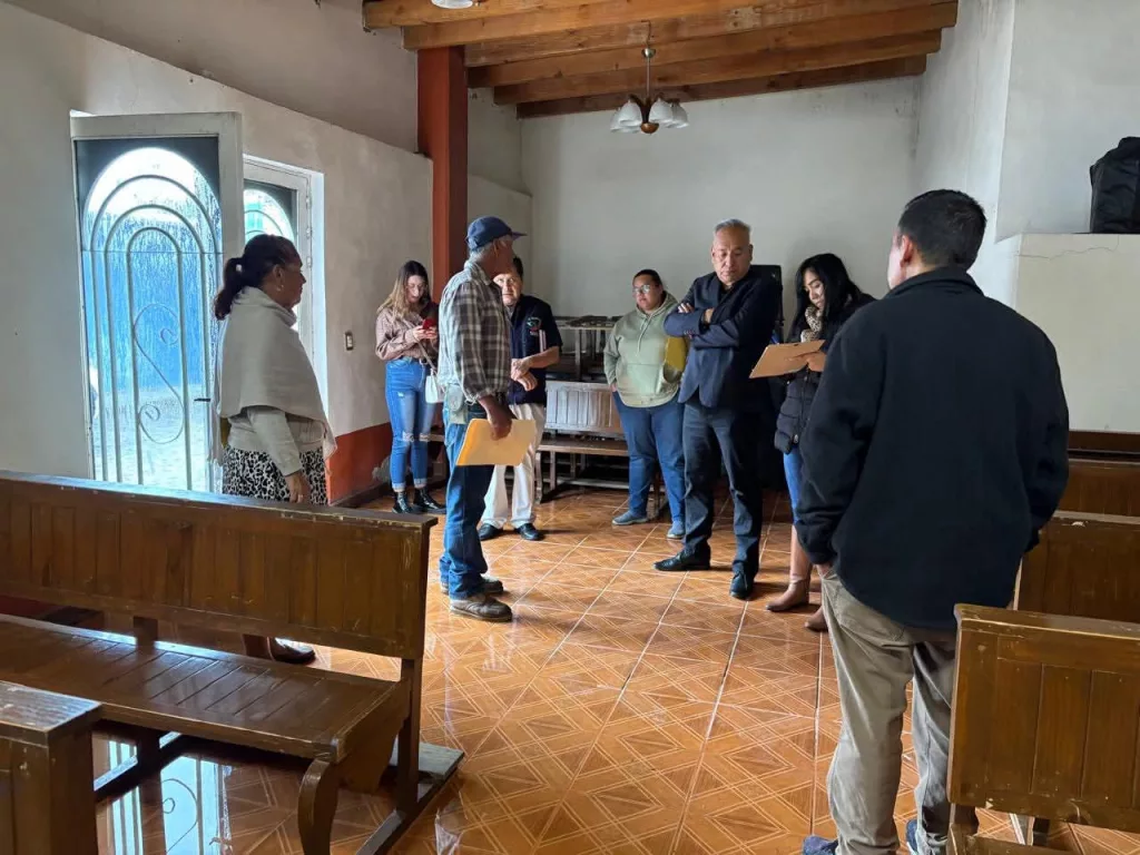 Durante su visita, el edil recorrió el inmueble afectado y escuchó las preocupaciones de los vecinos y autoridades auxiliares, quienes le expusieron la magnitud de las afectaciones en la estructura del templo, considerado un símbolo importante de identidad y fe para la comunidad.