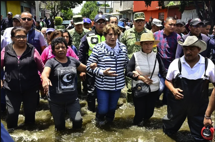 Este martes la gobernadora del Edomex, Delfina Gómez Álvarez, recorrió a pie con vecinos de Chalco parte de las zonas afectadas por las inundaciones provocadas por las precipitaciones pluviales de las tres últimas semanas.