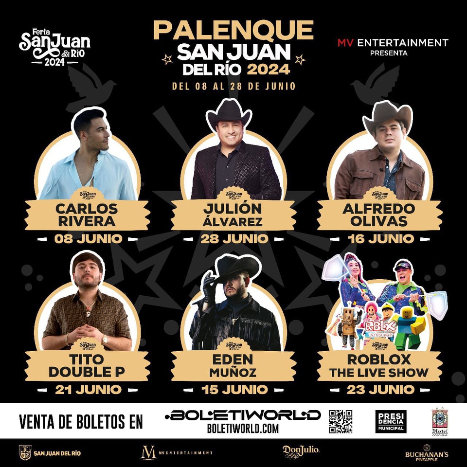Los artistas para el Palenque de este año son: Carlos Rivera, quien se presentará el 8 de junio;  Edén Muñoz, estará el día 15 de junio; Alfredo Olivas, el domingo 16 de junio; el artista Tito Double P, participará el 21 de junio; el show infantil Roblox, se presentará el 23 de junio y el 28 de junio, el cantante Julión Álvarez.