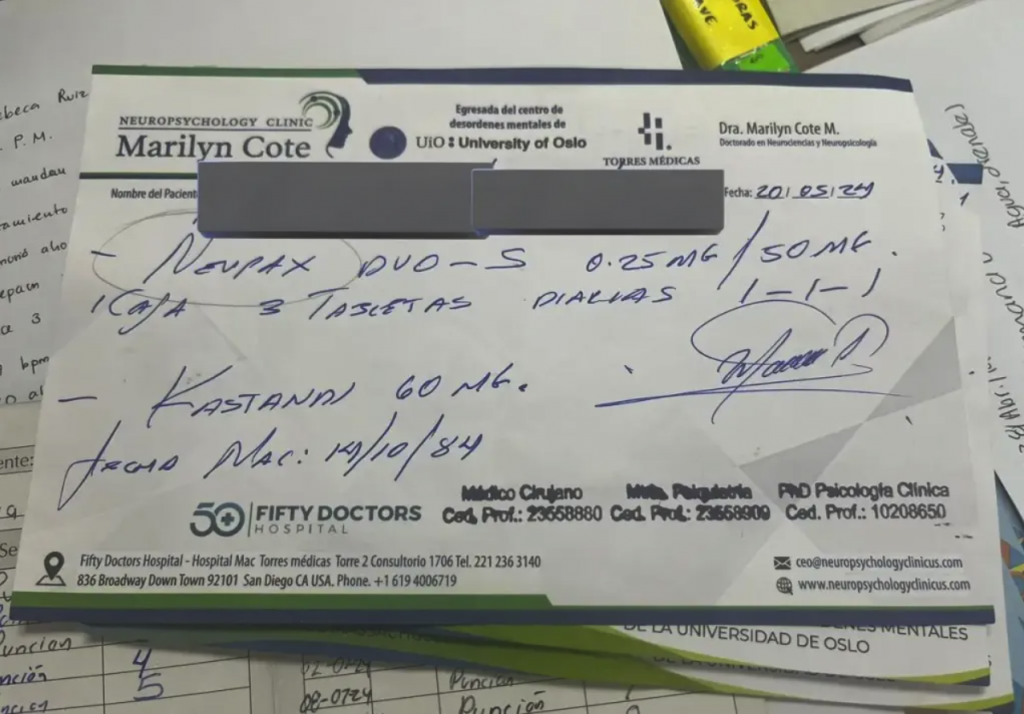 “Yo busqué atención con la doctora en 2019 y 2020. Durante un año acudí de manera presencial tanto a sus talleres grupales como a consulta individual. Me dio un diagnóstico erróneo y me mantuvo con altas dosis de antipsicóticos sin presentar mejoría, cambiándolos a su conveniencia sin esperar el tiempo para ver sus efectos».