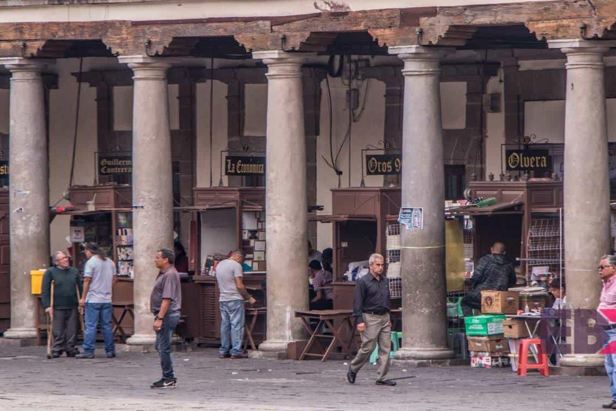 Bajo el amparo de los arcos de la plaza del centro histórico una decena de hombres muestran desde su celular una variedad de supuestas pruebas covid de laboratorios públicos y privados.