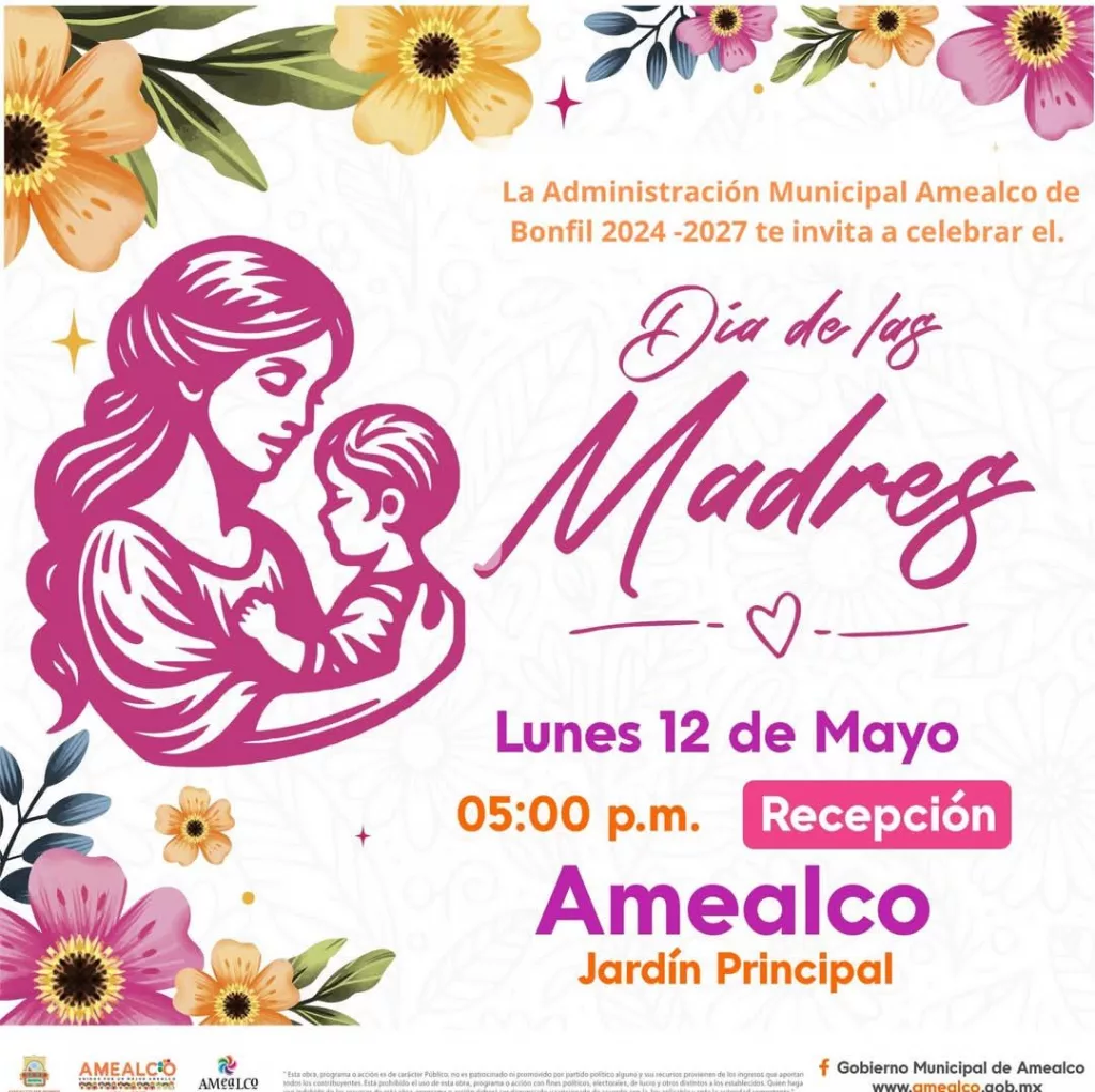 » ¡Para ustedes, mamás de Amealco! Nos llena de alegría invitar a todas las reinas del hogar a su gran festejo este 12 de mayo a las 5:00 p.m. en el Jardín Principal.