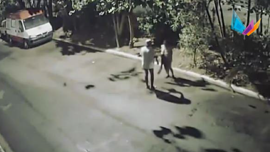 En las imágenes difundidas, se ve a los enamorados como quedan desnudos en plena calle, para su fortuna, no circulan más personas en ese lugar y lo que hacen es ponerse las pocas prendas que los delincuentes les proveyeron.
