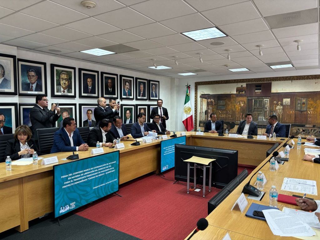 «Hoy firmamos el Convenio Marco de Coordinación para la liberación del derecho de vía del proyecto ferroviario Ciudad de México – Querétaro».