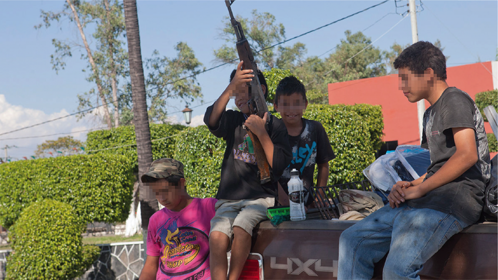 La gran mayoría (de los menores reclutados) están vinculados a temas de observación o de halconeo, o de explotación en los laboratorios y campos; por ejemplo, en el Triángulo Dorado los reclutan para la siembra y cosecha de la mariguana; en la zona del Bajío para temas de laboratorios; en Guerrero es más el uso para vigilancia o sicariato».