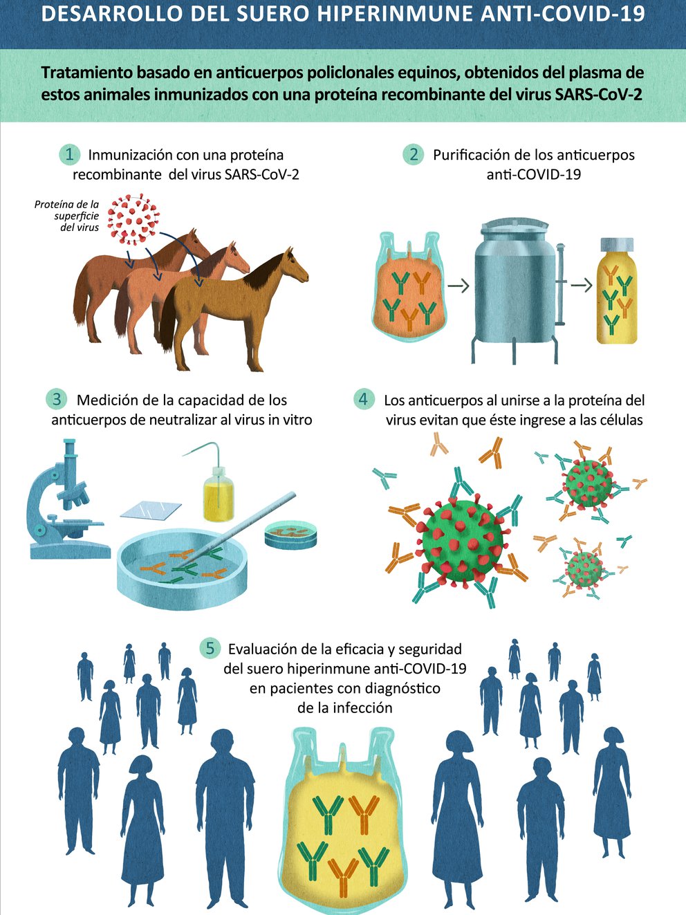 “Esto es una tecnología muy conocida, muy probada y muy segura. La experiencia con este tratamiento en otros países ha mostrado una disminución de 40% en la mortalidad de personas contagiadas con el virus SARS-CoV-2 y el tiempo de recuperación es más corto que en quienes no reciben el suero equino”.