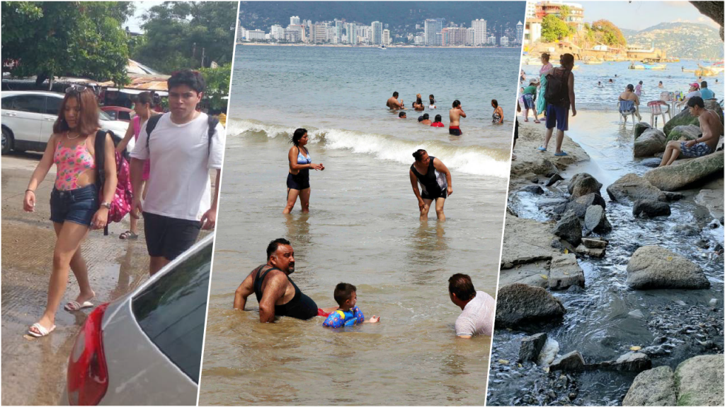 En plenas vacaciones, turistas en Acapulco pasean entre aguas negras.